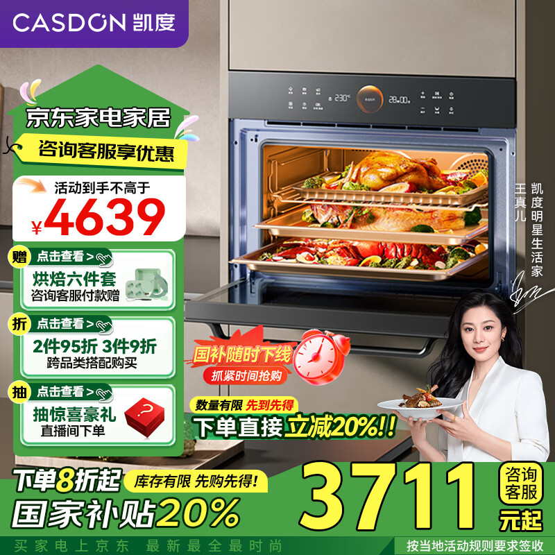 凯度(CASDON)60L蒸烤箱一体机嵌入式 双热风 多功能蒸箱烤箱 蒸烤炸炖四合一体SR6028FE22-TDPro二代价格:4639.00元!