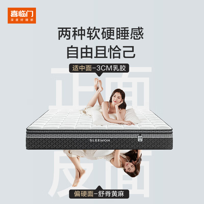 喜临门3cm乳胶专利7区深睡弹簧床垫 舒脊黄麻床垫 白骑士 喜礼 1.5x2米价格:2999.00元!