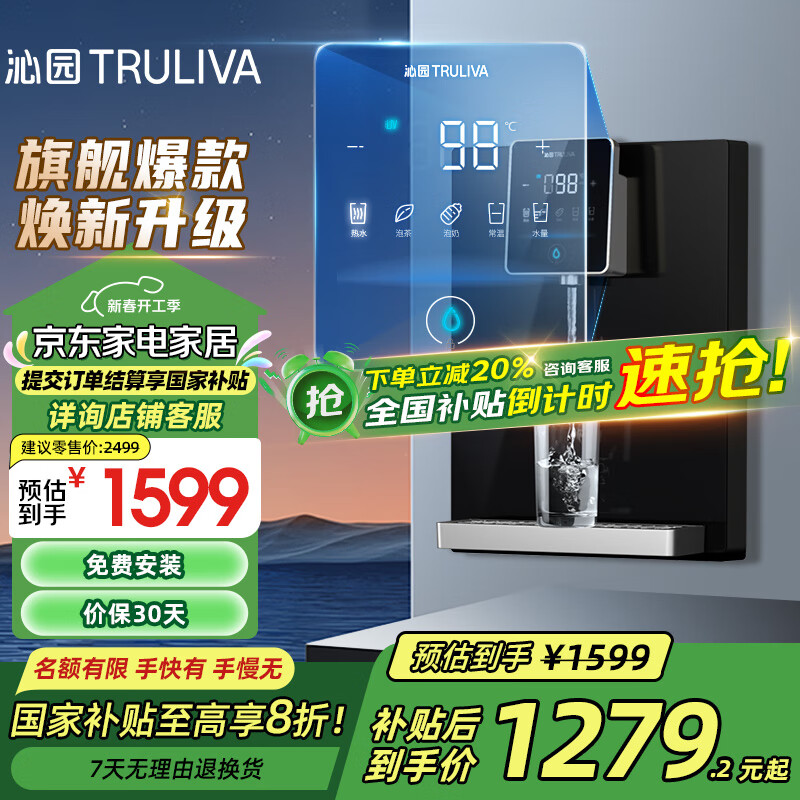 沁园(TRULIVA)4档调温定量管线机壁挂式饮水机 双晶管陶瓷加热 家用净水器净饮机伴侣 UV杀菌大通量适配W-O5412价格:1599.00元!
