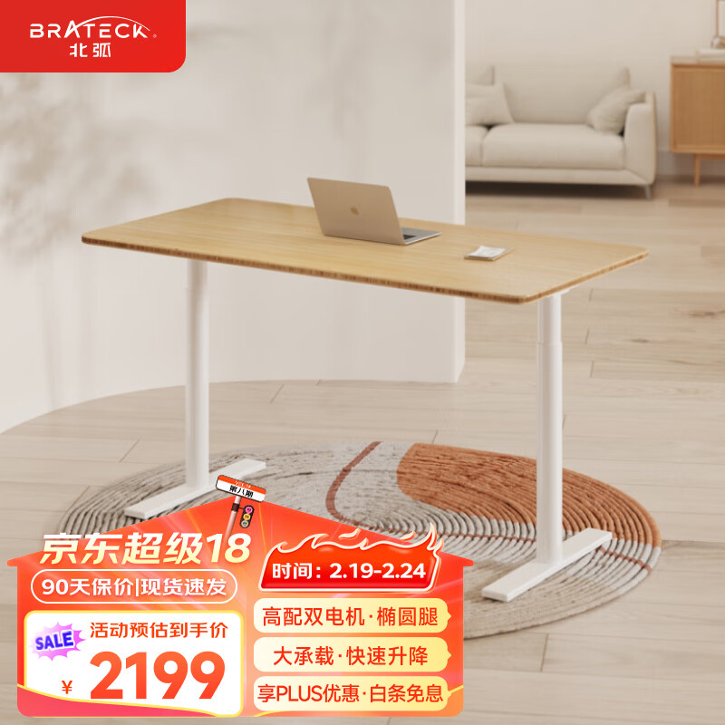 Brateck双电机电动升降电脑桌 北弧站立办公升降书桌 升降台 M1竹木1.5价格:4099.00元!