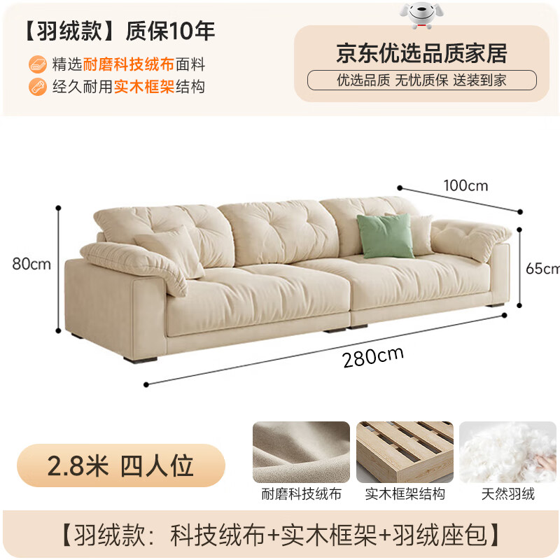 1、好喜欢这款沙发呀,造型艺术,颜色很好看,奶呼呼的,很高级的感觉,放在客厅很合适很上档次。质量也非常不错??软硬适中。满意的哦