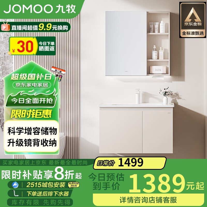 九牧(JOMOO)浴室柜 陶瓷一体盆抗菌洗脸盆柜组合淡藕色80cm A2741-14AX-1价格:1449.00元!