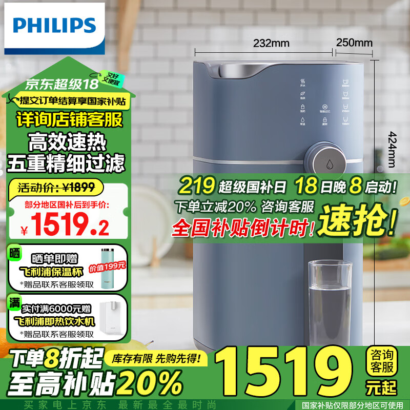 飞利浦(PHILIPS)加热净水器水魔方家用即热饮水机 台式免安装净饮机ADD6811【补贴】价格:1899.00元!