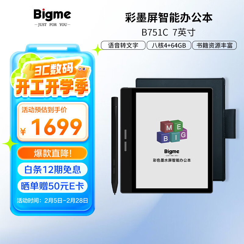 BIGME大我 B751C 7英寸彩色墨水屏智能办公本墨水屏电子书阅读器手写本电纸书平板 套装价格:1699.00元!