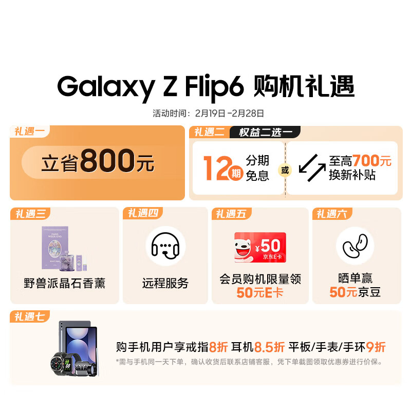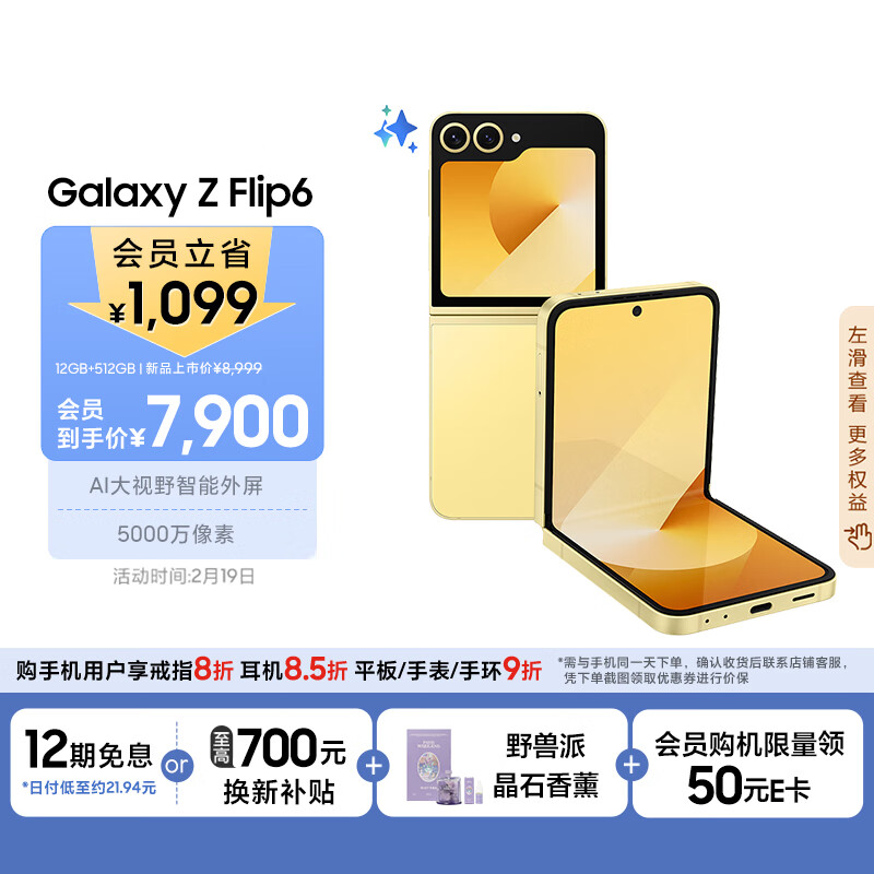 三星Samsung Galaxy Z Flip6 AI手机 折叠屏手机 披荆斩棘哥哥同款 智能外屏 双卡 12GB+512GB 热爱黄价格:8199.00元!