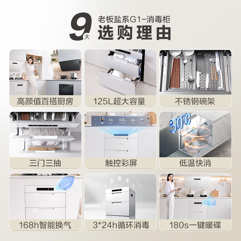 此款老板ZTD125Z-XZ79-G1很喜欢这个外观,质量挺好的,新买的消毒柜高大上,容量很大,碗碟放进去消毒完直接烘干了,方便实用,很满意