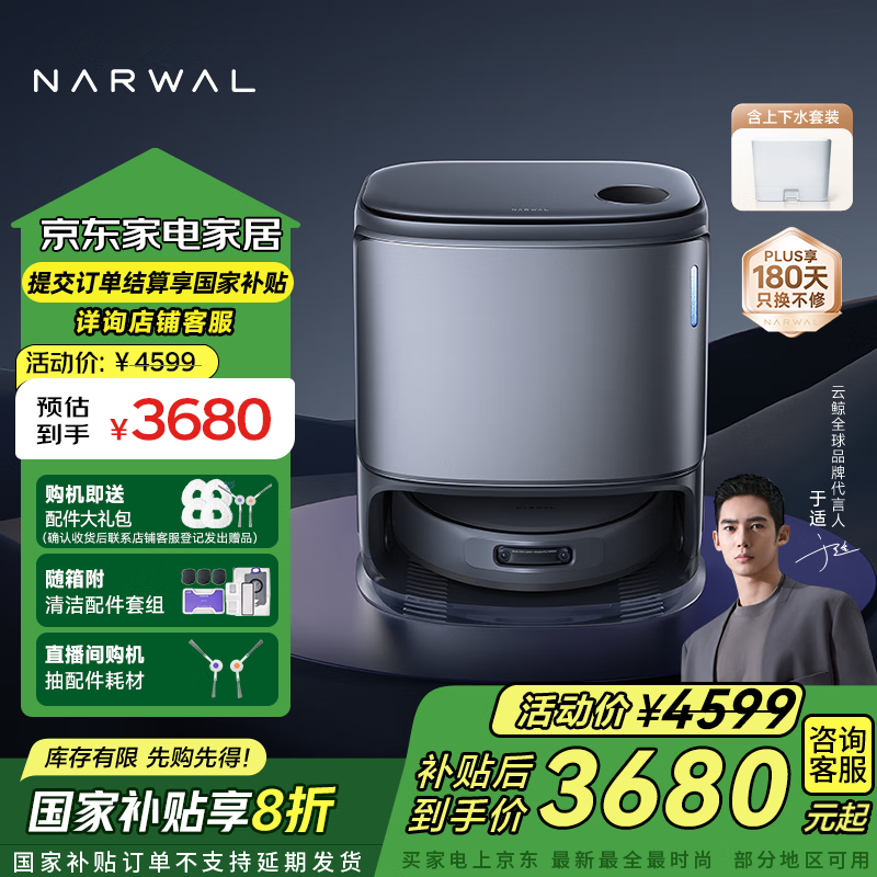 云鲸扫地机器人逍遥001 扫拖一体自动清洗烘干基站集尘双芯双目 全智能防缠绕拖地机 上下水套装深空灰价格:4599.00元!