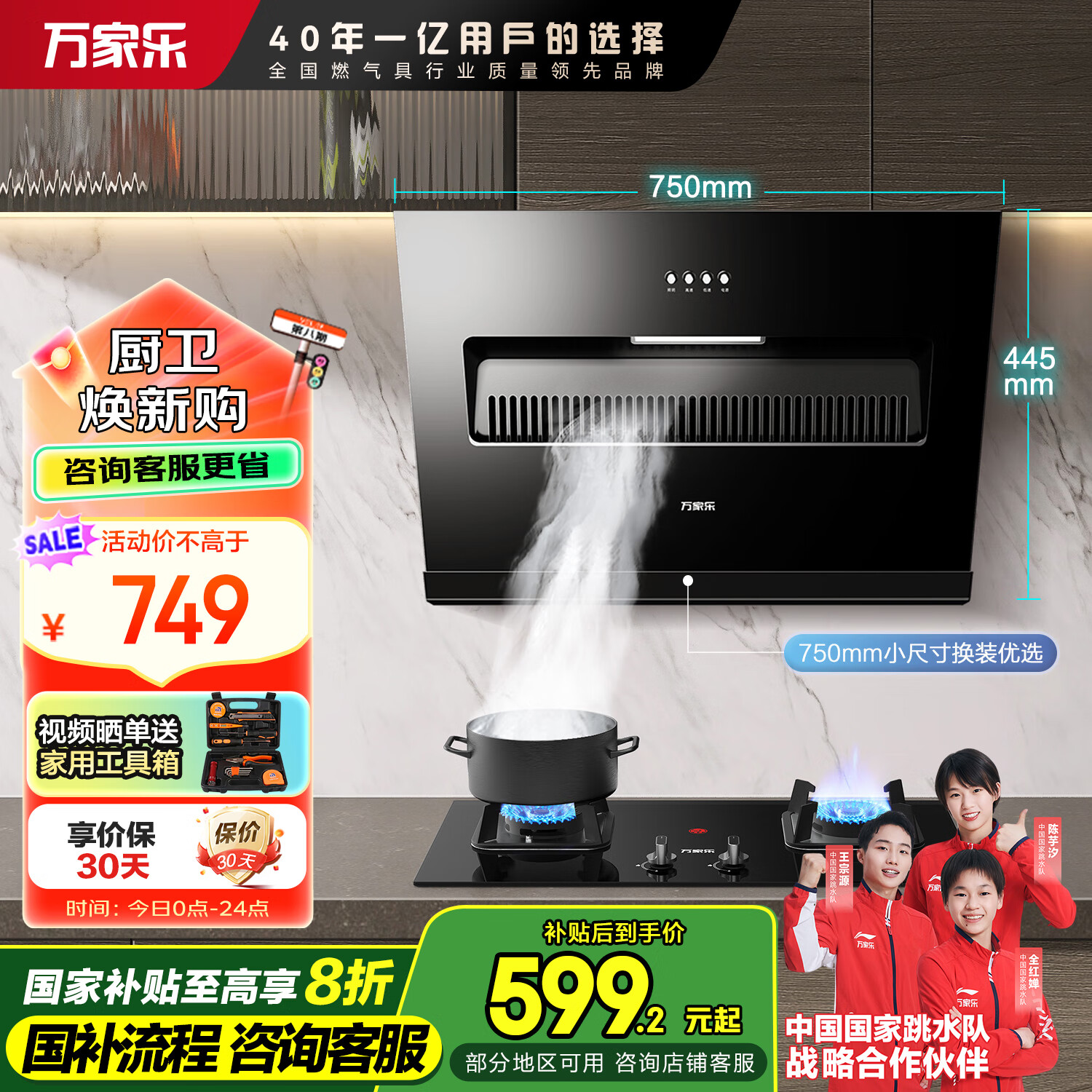 万家乐抽油烟机【家电补贴20%】 18m3/min侧吸式小尺寸油烟机小户型出租家用吸油烟机CXW-280-AL031价格:749.00元!