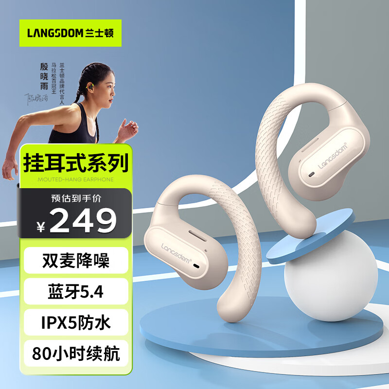兰士顿蓝牙耳机挂耳式 骨传导概念开放不入耳 双麦降噪运动跑步骑行 适用于苹果小米华为手机 TS05米黄色价格:249.00元!