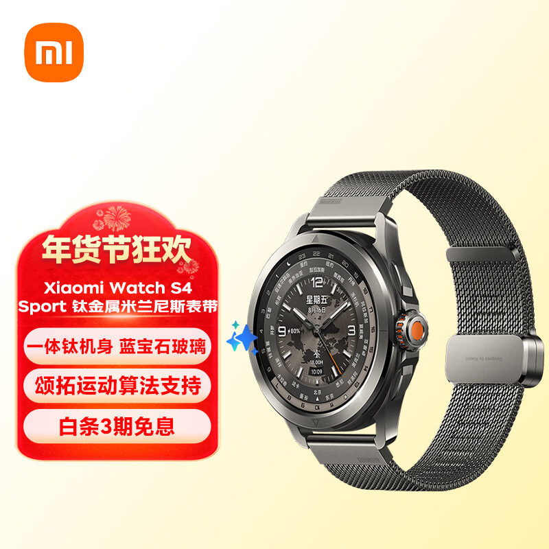 小米(MI)Xiaomi Watch S4 Sport 钛金属米兰尼斯表带 专业户外运动手表 心率血氧监测 小米手表 智能手表价格:2499.00元!
