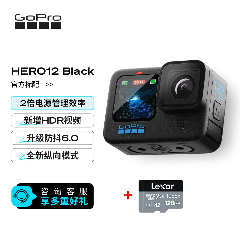 GoProH12 运动相机 户外摩托骑行 潜水防水防抖相机 官方标配加128G存储卡套组价格:3377.00元!