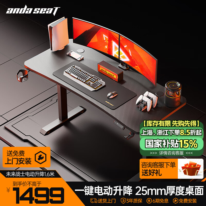 andaseaT安德斯特电脑桌电竞桌台式家用办公书桌子 未来战士电动升降1.6米价格:1999.00元!