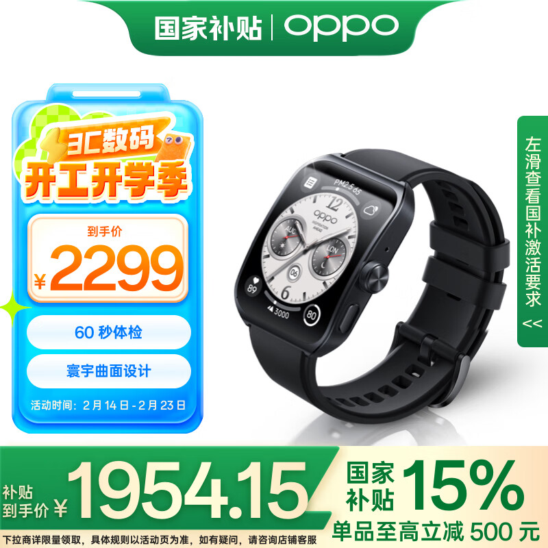 OPPO Watch 4 Pro 极夜黑【补贴15%】全智能手表 运动健康手表 男女eSIM电话手表 送礼 oppo手表价格:2299.00元!