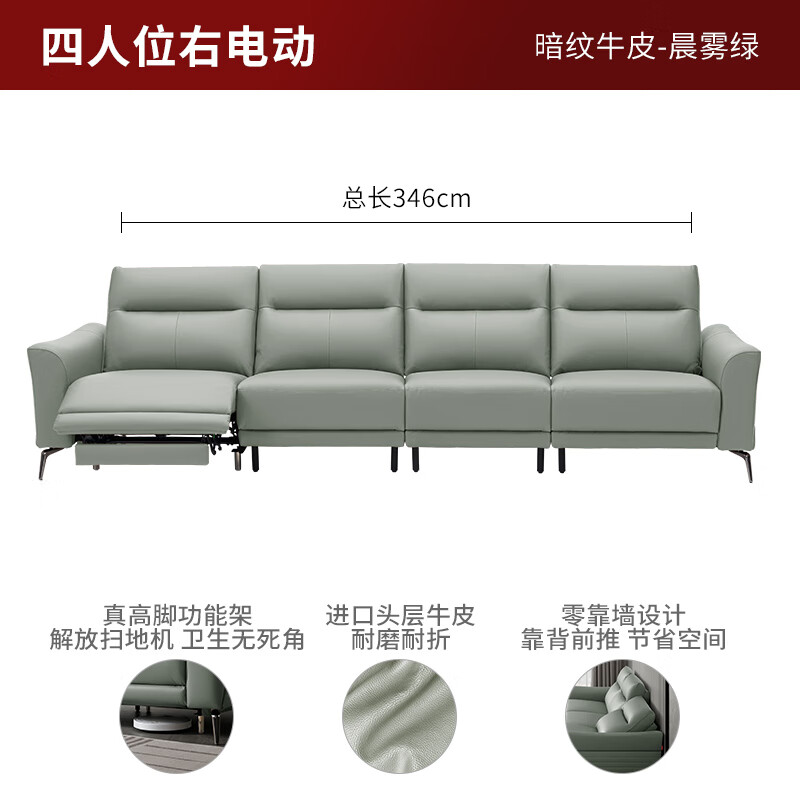 顾家家居简约零靠墙头层牛皮高脚电动功能沙发客厅6055E【绿】4人位右电动价格:7599.00元!