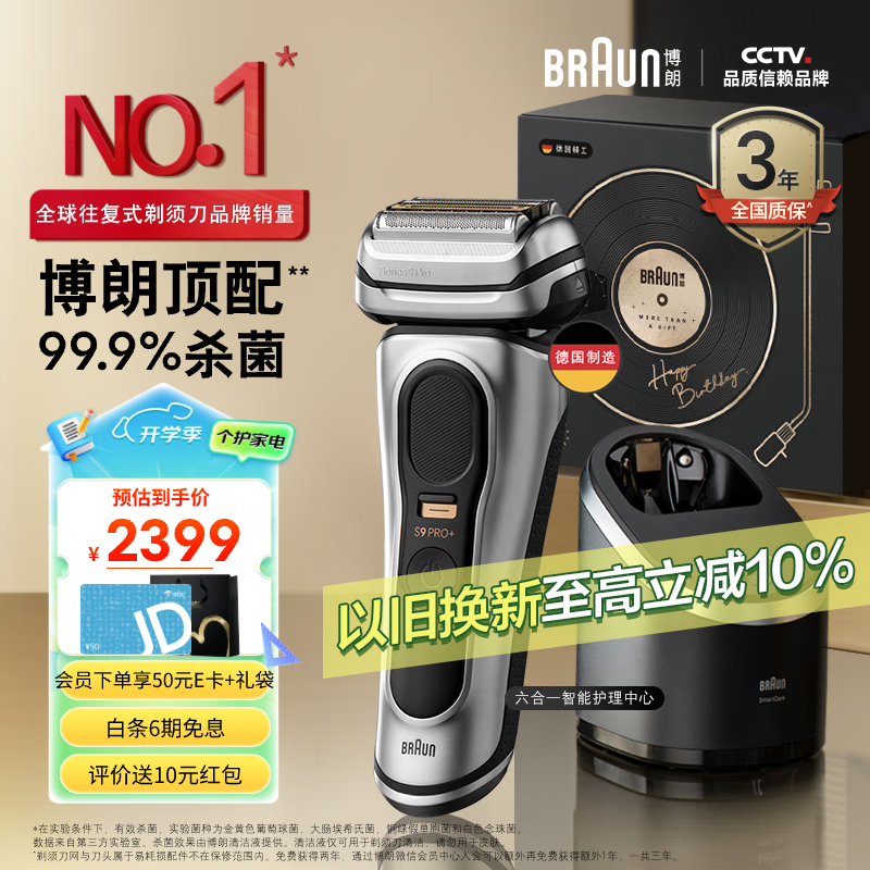 博朗(BRAUN)9系pro+升级版清洁护理中心电动剃须刀整机德国进口往复式礼盒款送男朋友生日礼物送老公价格:2399.00元!