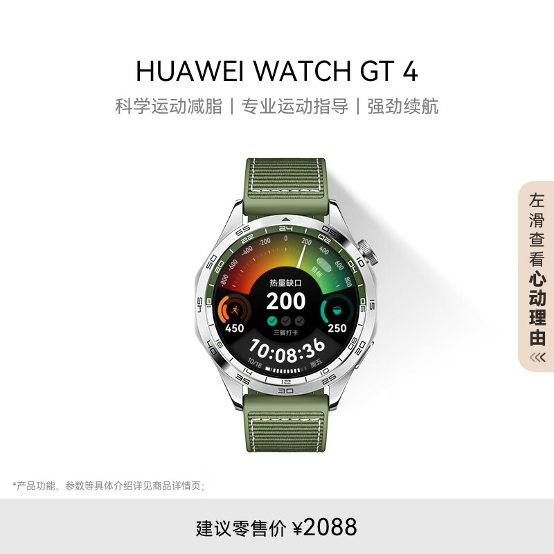 华为WATCH GT4华为手表智能手表呼吸健康研究心律失常提示华为手表云杉绿 送男友男表46mm价格:1388.00元!