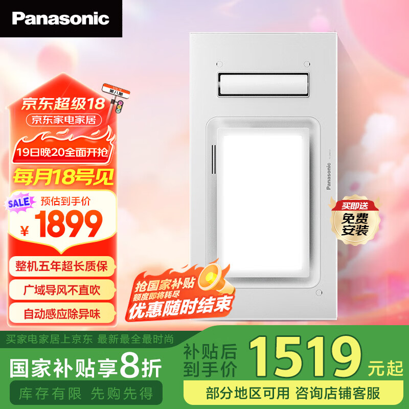 松下(Panasonic)风暖浴霸照明排气一体集成300x600灯除异味浴室暖风机FV-JDBQVU1价格:2999.00元!