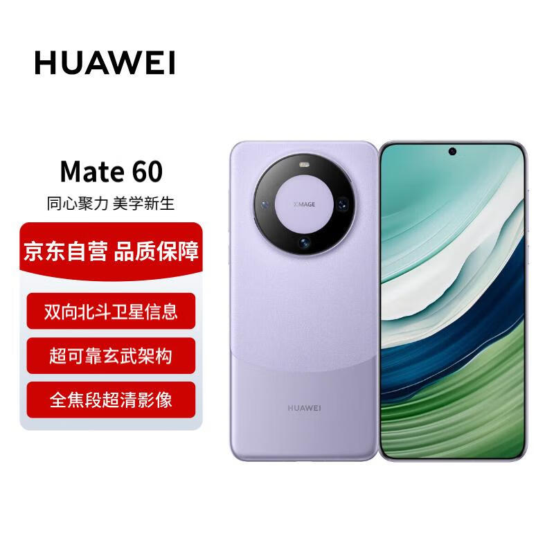 华为旗舰手机 Mate 60 12GB 512GB 南糯紫【赠话费券】价格:4999.00元!