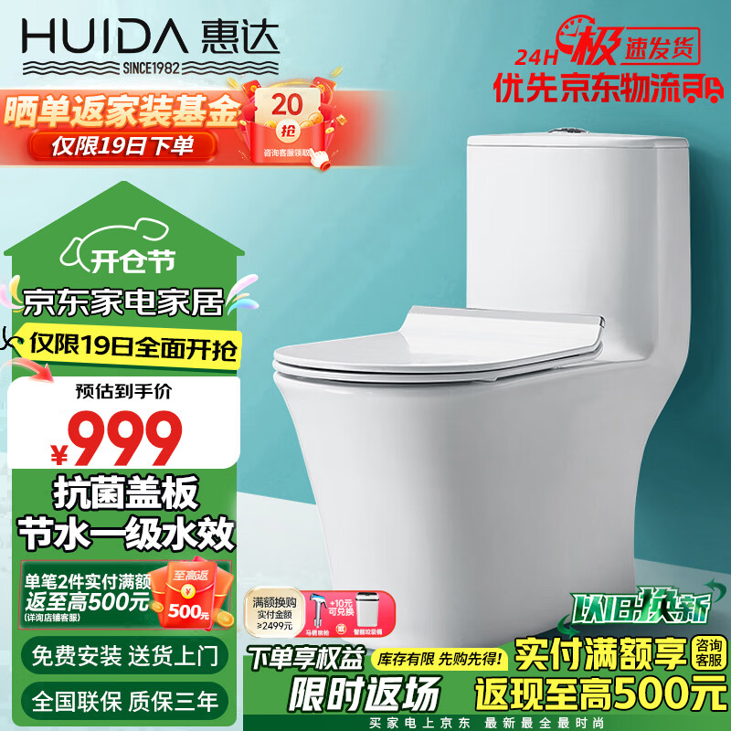 惠达(HUIDA)抽水马桶家用大冲力节水虹吸式卫生间坐便器HDC6218A 305坑距价格:999.00元!