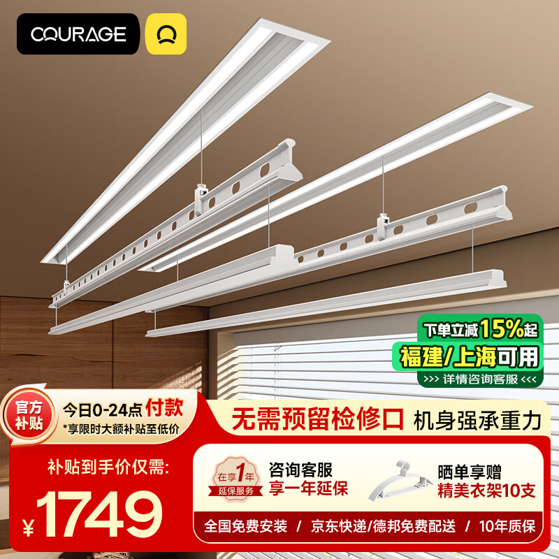 卡瑞琪(COURAGE)电动晾衣架隐形阳台家用隐藏式晾衣架薄晾衣杆双杆 语音2.4+被杆价格:1849.00元!