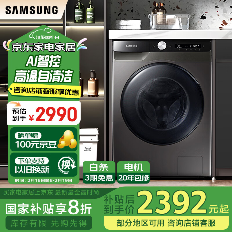 三星(SAMSUNG)全自动滚筒洗烘一体机5000T10.5KG泡泡净蒸汽除菌大桶径设计以旧换新补贴灰WD10T504DBX/SC价格:2950.00元!