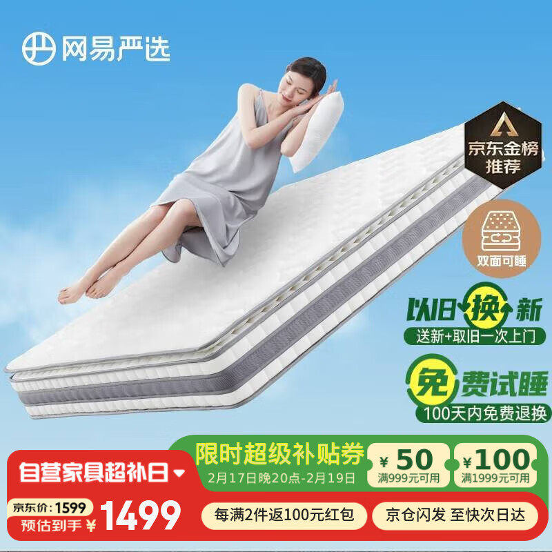 网易严选AB面弹簧床垫1.5×2米 乳胶床垫席梦思床垫 独袋弹簧奢睡款价格:2199.00元!