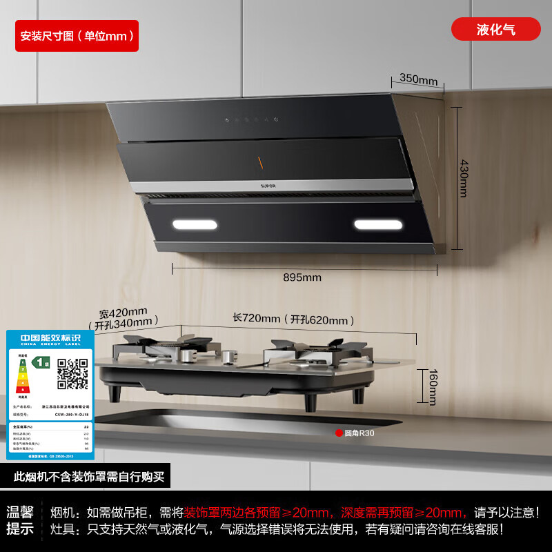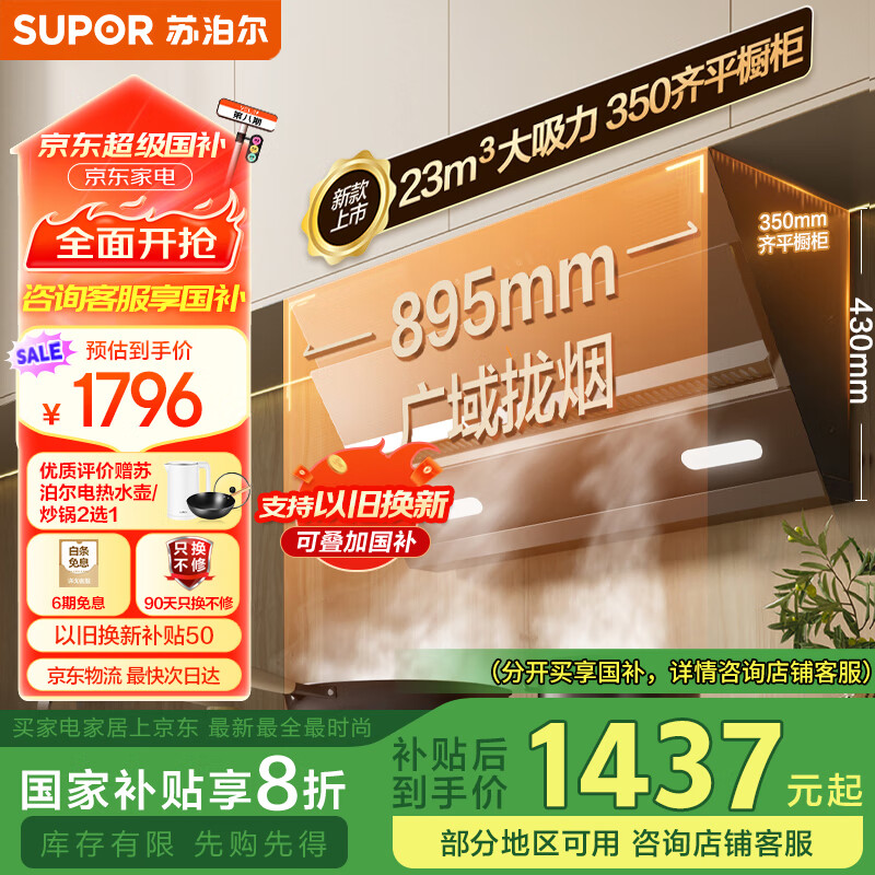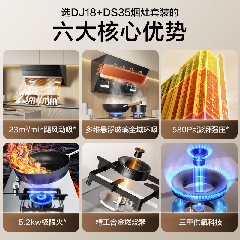 苏泊尔(SUPOR)抽油烟机家用 23立方大风量580Pa风压 侧吸式齐平橱柜挥手智控免拆洗 燃气灶套装DJ18+DS35液化气价格:1796.00元!
