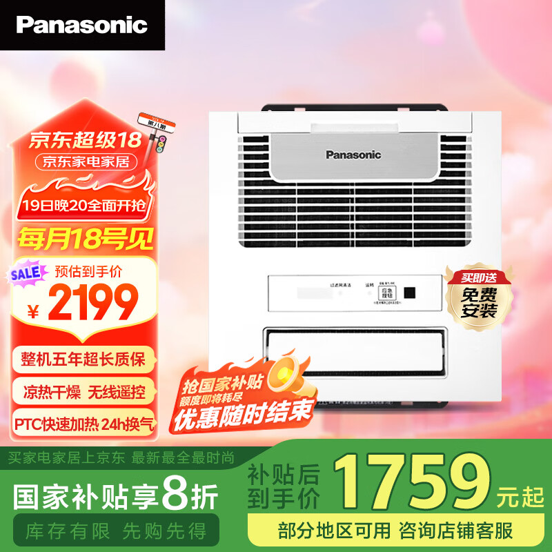 松下(Panasonic)浴霸暖风排气一体 集成吊顶式浴室暖风机 FV-RB20KS2珍珠白价格:2780.00元!