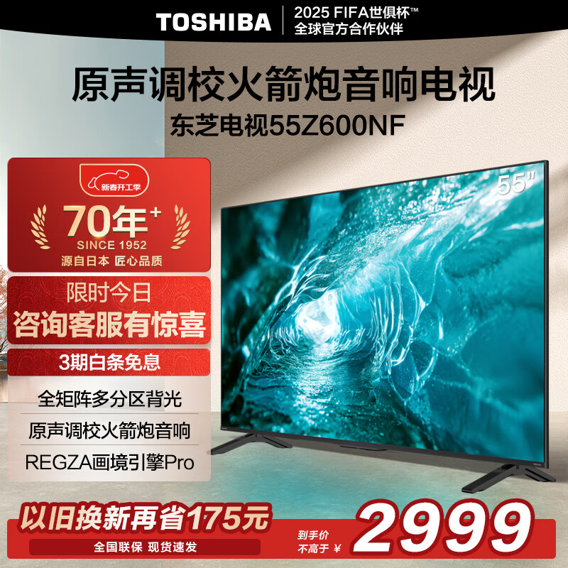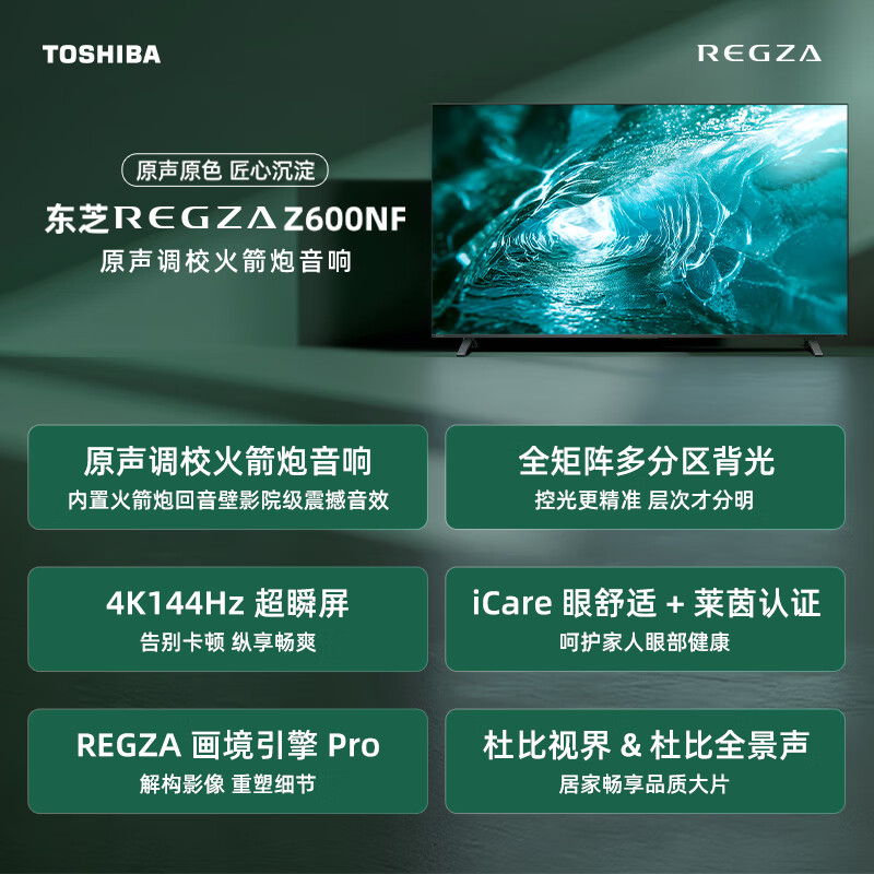 东芝电视55Z600NF 55英寸 全矩阵多分区背光 火箭炮音响 4K144Hz超清液晶智能平板游戏电视机 以旧换新价格:2999.00元!