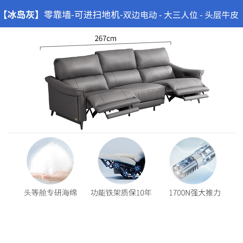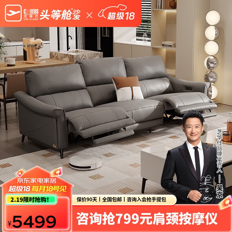 芝华仕(CHEERS)头等舱智能椅绅士皮沙发零靠墙电动功能芝华士50611B灰大三价格:5499.00元!