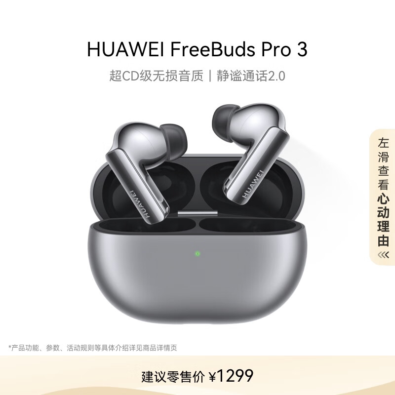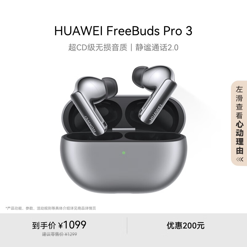 华为FreeBuds Pro 3 真无线蓝牙降噪耳机 星闪连接技术/游戏影音 冰霜银价格:1099.00元!