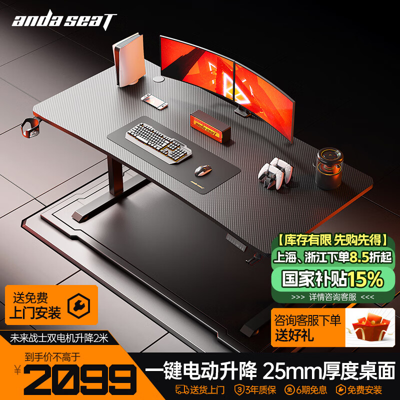 andaseaT安德斯特电脑桌电竞桌台式家用办公书桌 未来战士双电机升降2米价格:2599.00元!