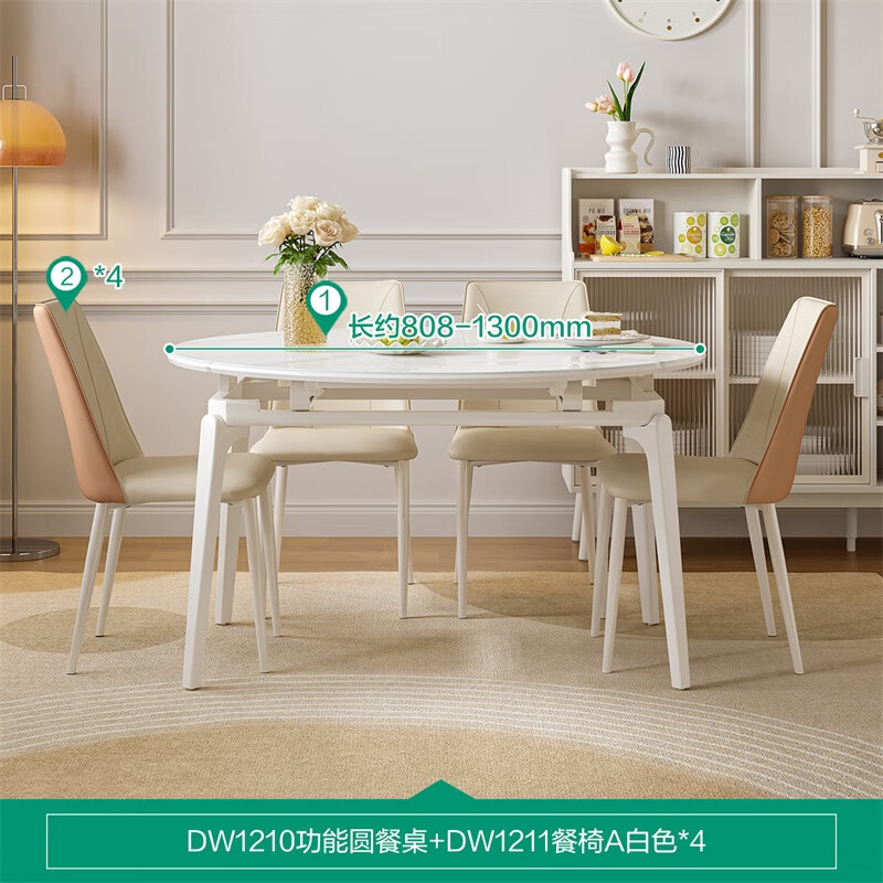 全友家居现代简约可伸缩折叠圆餐桌椅组合餐厅一桌四椅吃饭桌子DW1210价格:3284.29元!