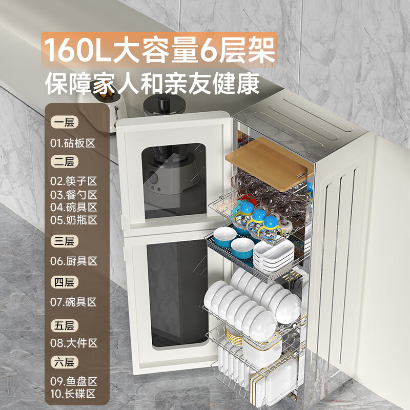 4、家里两个孩子少不了这种大点的消毒柜上下两层能满足家用和宝宝用挺适合的买之前专门咨询了消毒等级的区别这款适合我们果断入手了颜值也很不错容量也可以满足日常需求还能设置无菌挺不错的