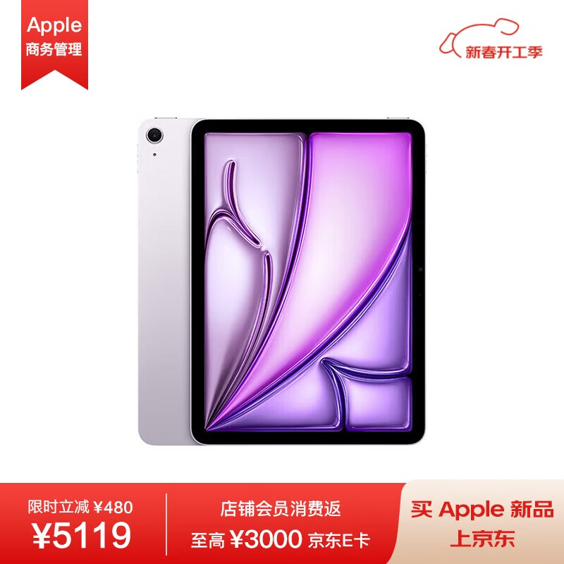 Apple iPad Air 11 英寸 M2芯片 2024年新款平板电脑256GB WLAN版/MUWK3CH/A 紫色*企业专享价格:5599.00元!