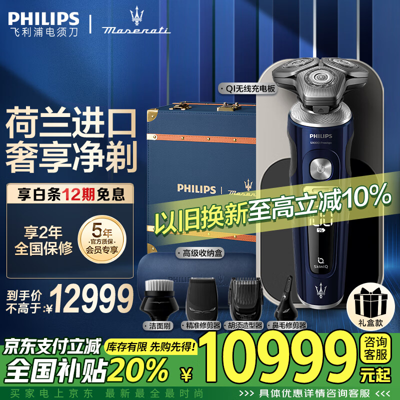 飞利浦(PHILIPS)电动剃须刀奢享9系玛莎联名 高端SP9系列刮胡刀礼盒 生日礼物 送男友 送老公 补贴价格:12999.00元!
