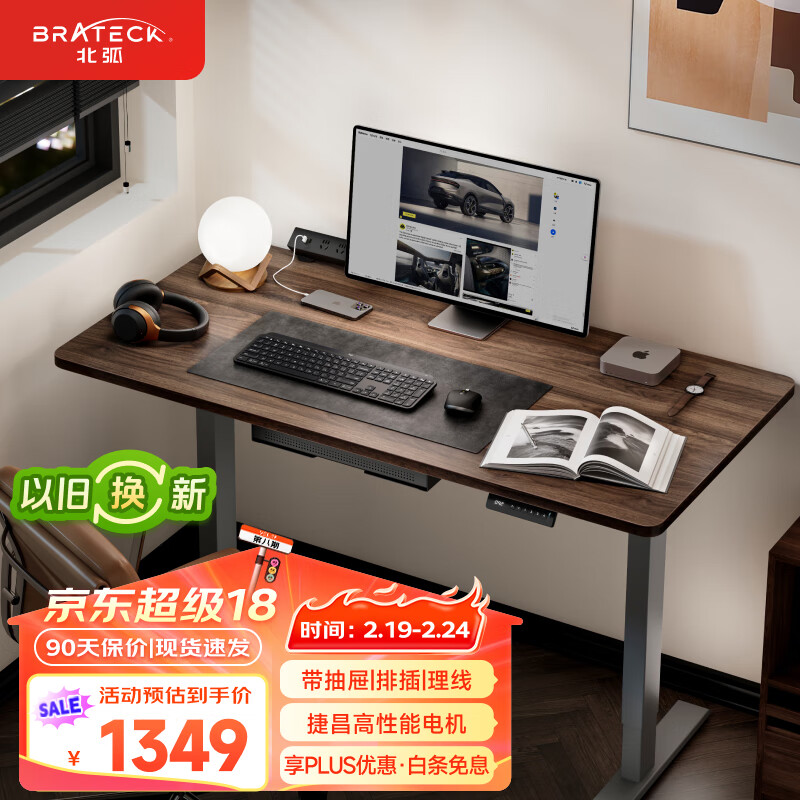 Brateck电动升降电脑桌 北弧办公学习桌电竞升降书桌 S2摩卡棕1.2米价格:1899.00元!
