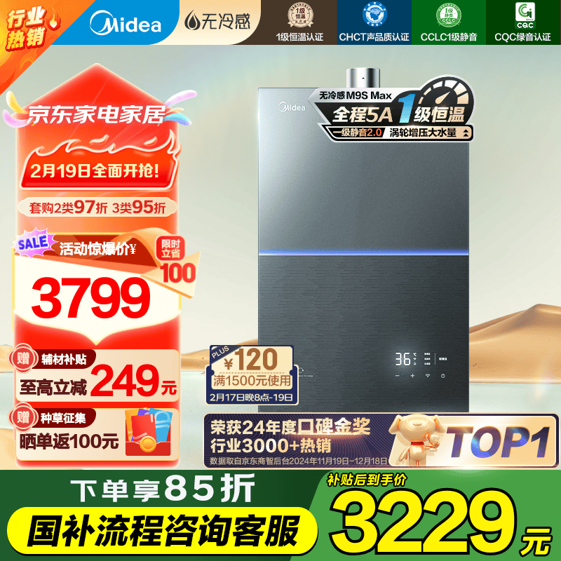 美的(Midea)【无冷感M9SMax】16升燃气热水器天然气一级恒温静音增压补贴立减15%以旧换新JSQ30-M9S Max价格:3799.00元!