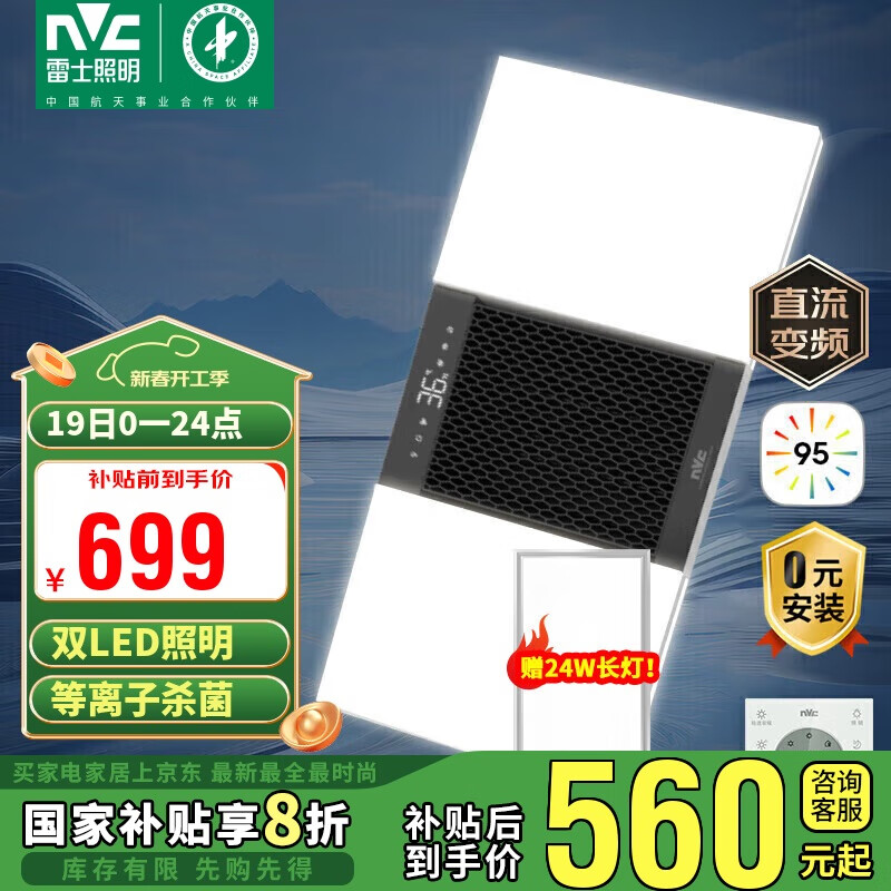 雷士(NVC)风暖浴霸双LED灯离子杀菌浴霸暖风照明排气一体浴室集成吊顶Y358价格:699.00元!