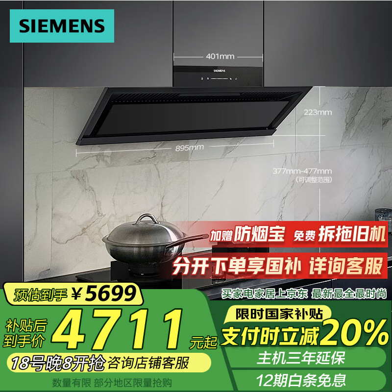 西门子(SIEMENS)锥锋速吸烟灶套装 大风量超薄侧吸抽油烟机自清洁4.5kW燃气灶LSVT1B3BNW+23MP烟灶套装天然气价格:5699.00元!