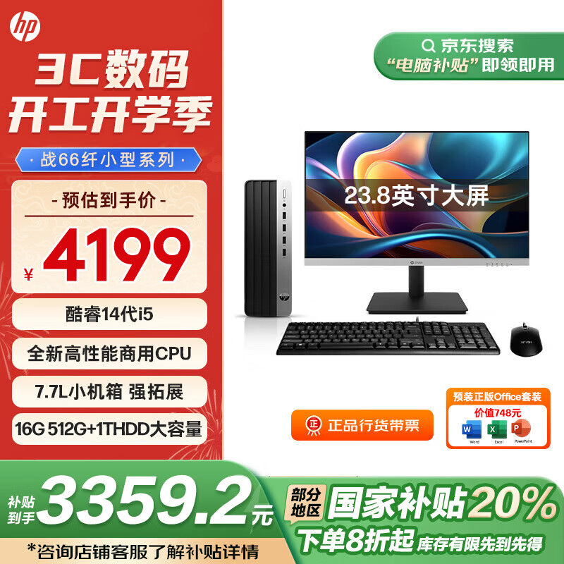 惠普 补贴 战66 台式电脑主机 (14代i5-14500 16G 512G+1T海量存储) 23.8大屏 商用办公学习价格:4199.00元!