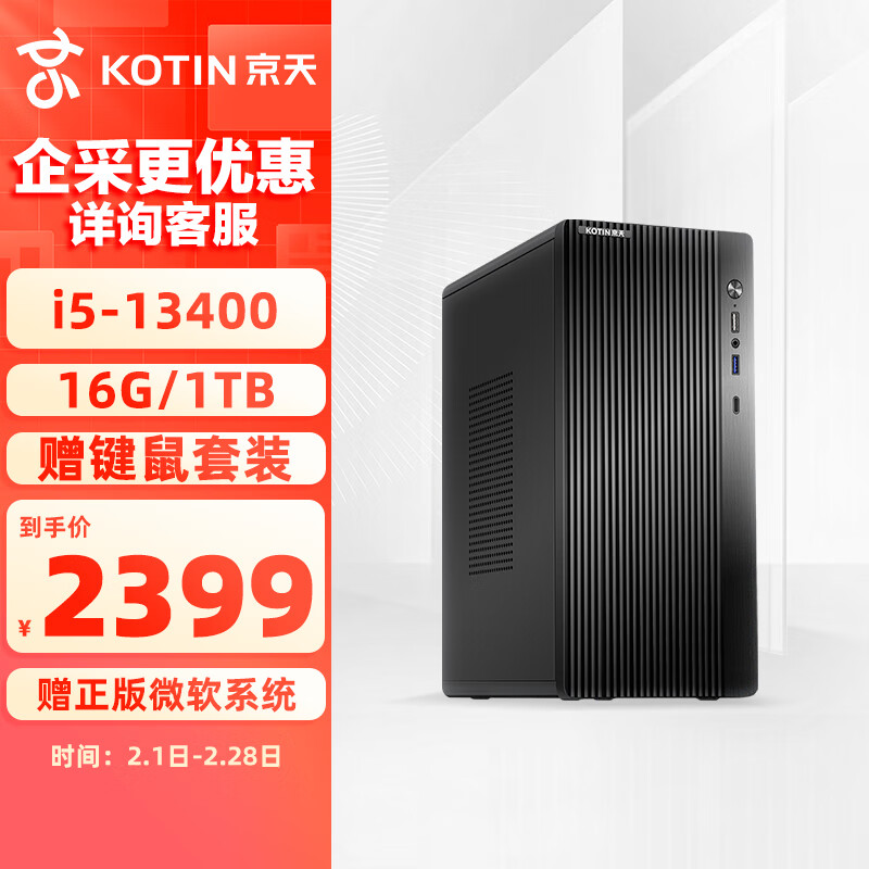 京天Blitz 508 办公商用电脑台式机全套整机( i5-13400/16G/1TB固态 商务键鼠 WiFi )单主机DIY组装机价格:2499.00元!