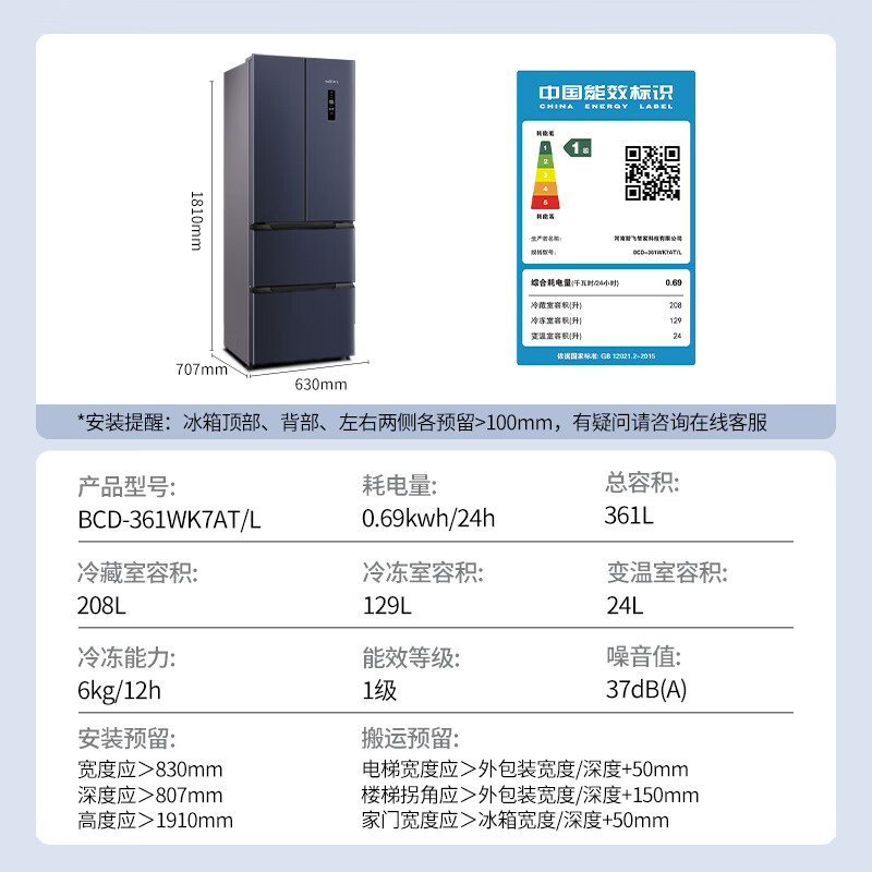 新飞BCD-361WK7AT/L优缺点评测评价: