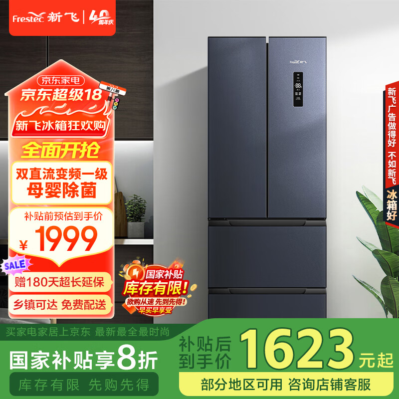 新飞(Frestec)361升一级变频三重除菌风冷无霜法式多门四开门家用电冰箱补贴20% BCD-361WK7AT/L价格:1999.00元!