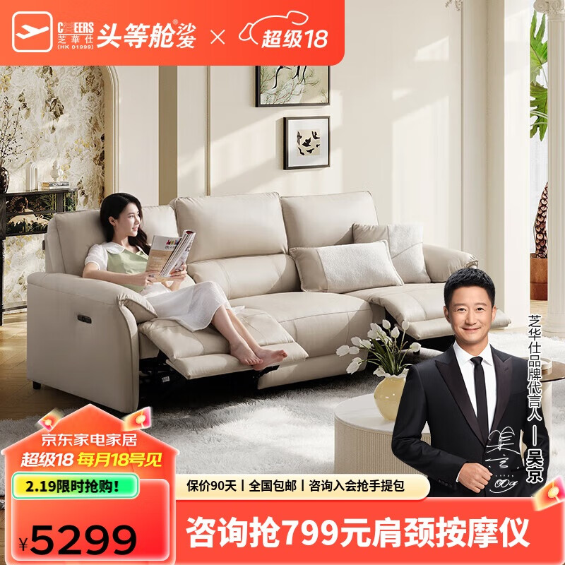 芝华仕(CHEERS)头等舱智能椅贵族皮沙发零靠墙法式电动功能芝华士11323白三双价格:5299.00元!