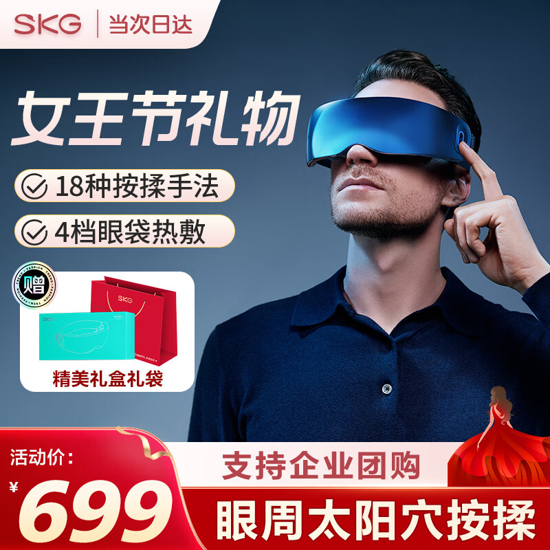 SKG眼部按摩仪k5缓解疲劳热敷眼睛护眼仪物理揉捏蓝牙音乐睡眠智能按摩器 38三八女神节妇女节礼物 【行业TOP】眼部+太阳穴按摩价格:899.00元!