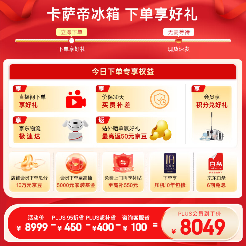 1、终于买到了卡萨帝纯白冰箱,在法式和十字中纠结后还是选择了法式。制冷和保鲜效果很棒,净味功能也有,-30℃深冷冻功能也是吸引我的点。基本完全听不到压缩机运行声音,550L容量4-5口人也是够用的。客服很有耐心,售后也做得非常棒,反馈效率很快。