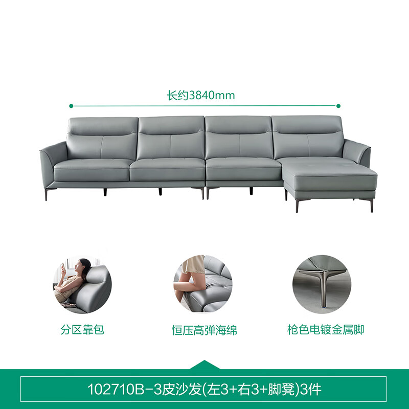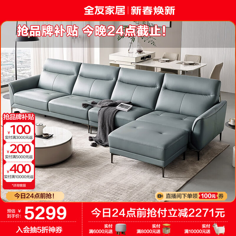 全友家居 真皮客厅沙发高端大气上档次头层牛皮直排式一字沙发102710价格:7570.00元!