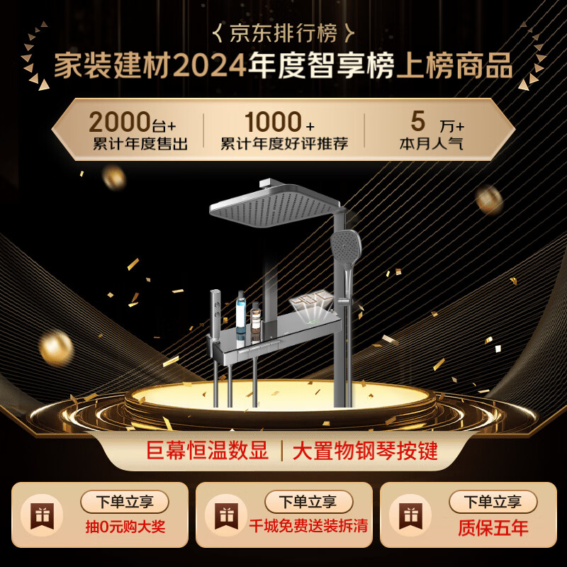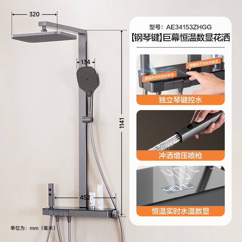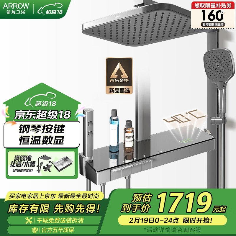 箭牌(ARROW)四功能恒温数显花洒全套增压花洒大置物淋浴花洒套装AE34153ZHGG价格:1879.00元!