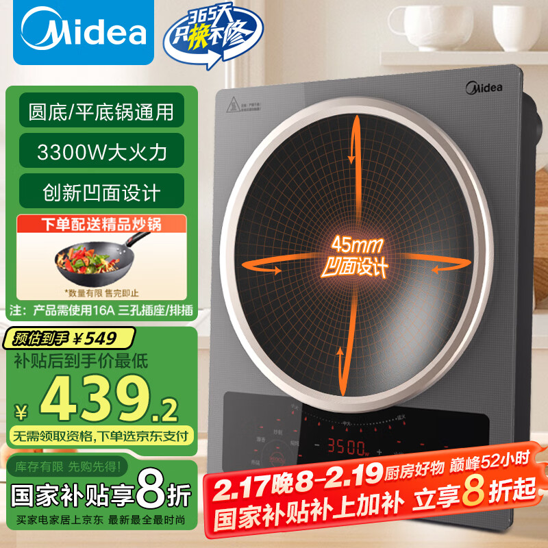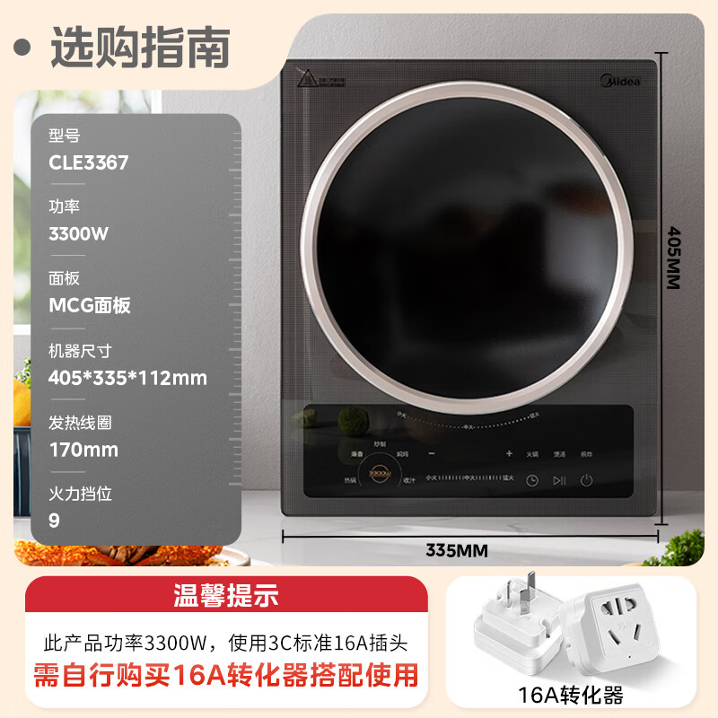 美的(Midea)家用电磁炉电陶炉 3300W大功率 小型多功能炒菜锅猛火爆炒凹面大火包锅商用电磁灶补贴CLE3367价格:549.00元!